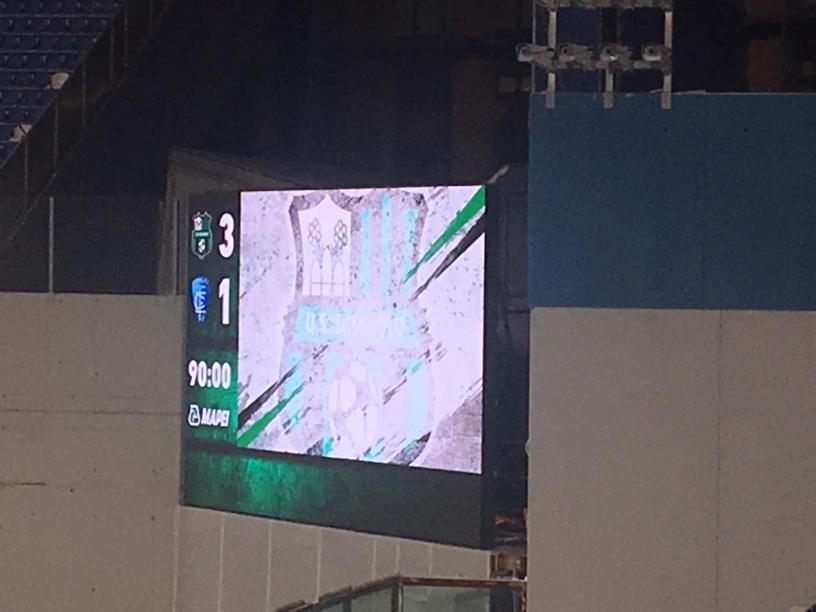 Consigli 6,5 ; Lirola 6 ; Marolon 6 ; Ferrari 6,5 ; Rogerio 5,5 ; Duncan 6 ; Locatelli 6 ; Sensi 5,5 ; Berardi 6+ ; Boateng 7 ; Di Francesco 7 .