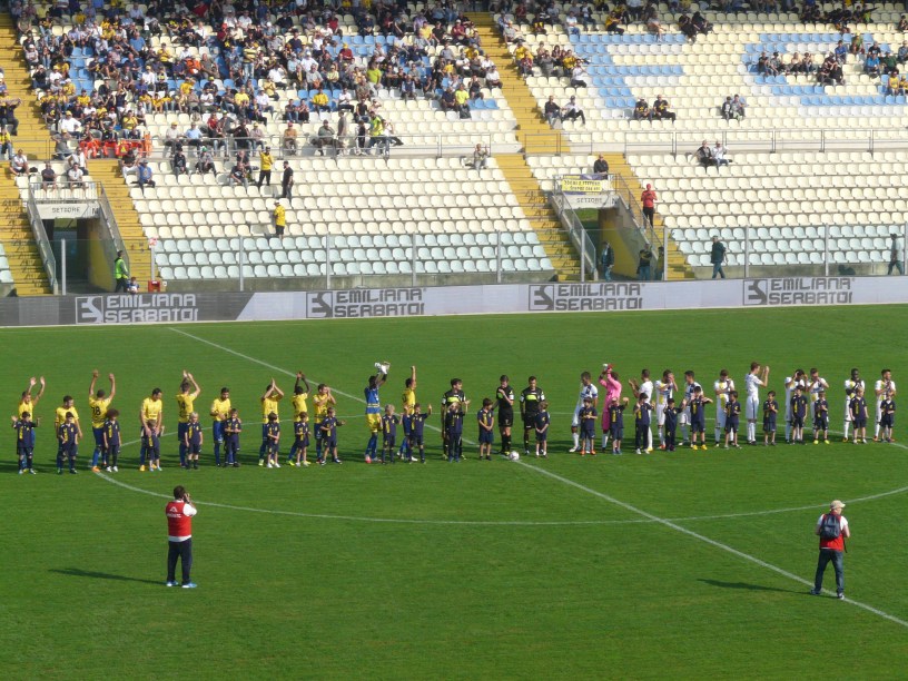 Davanti ai 6mila del Braglia il Modena parte propositivo col 4-2-3-1. Dopo solamente 3 minuti la formazione bresciana del Ciliverghe è costretta ad effettuare il primo cambio della partita sostituendo il giocatore Alex Guerci, costretto ad uscire in barella, con Dell’Orto.