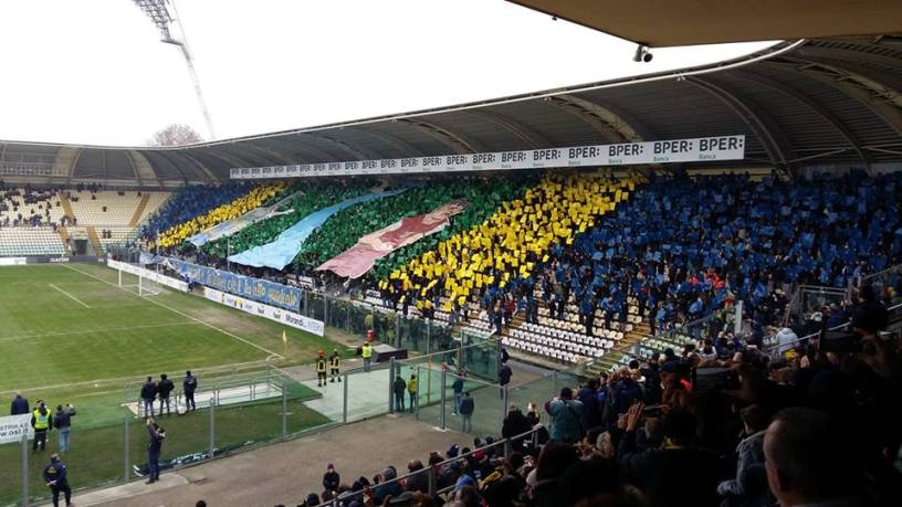 La coreografia è stata qualcosa di strabiliante, il pubblico non ha mai smesso di cantare per i propri beniamini, e sfottò immancabili verso la Reggiana, come da copione per un derby perfetto.