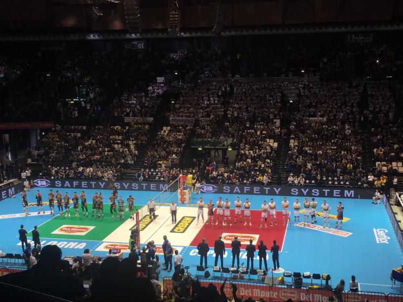 Squadre tipo, Christenson, Zaytsev, Urnaut, Bednorz, Anzani, Holt e Rossini. Entrano in corso, Keemink, Pinali, Pierotti, Kaliberda e Mazzone. Per Perugia sestetto tipo, squadra stellare.