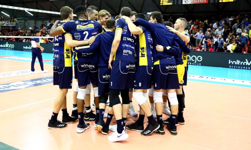 Andrea Giani ha messo in campo la seguente formazione : Christenson in regia, Zaytsev, Kaliberda e Anderson nel ruolo di schiacciatori. Bossi e Mazzone al centro, vista l’indisponibilità di Holt. Rossini libero. Ingressi in corso d’opera per Estrada, Pinali e Salsi.