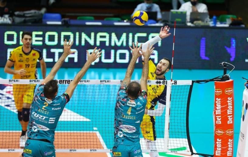 Andrea Giani mette in campo Christenson, Petric, Stankovic, Mazzone, Karlitzek, Lavia e Grebennikov, la stessa squadra della gara di andata. Subentrano Porro al palleggio, dal talento cristallino, Rinaldi, Vettori, Bossi e Mazorra nel quinto set, esclusivamente da almanacco. Turn over massiccio e positivo per riposo e nuove alternative.
