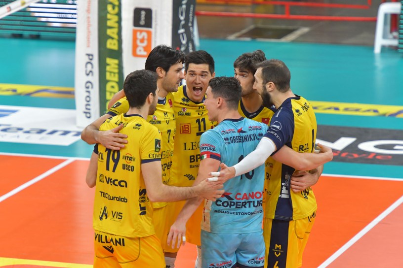 Modena, esultanza durante Sir Safety Conad PERUGIA - Leo Shoes MODENA, 9ª giornata Superlega Credem Banca, Campionato Italiano di Pallavolo Maschile Serie A1 2020-21. presso PalaBarton Perugia IT, 3 dicembre 2020. Foto: BENDA [riferimento file: 2020-12-03/MB5_1399]