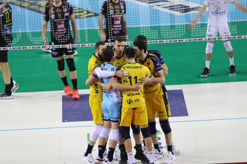 Coach Andrea Giani risponde con Christenson in regia supportato da un eterno Petric. Nel ruolo di centrali Stankovic e Mazzone in buona condizione, anche se Daniele “paga” qualche errorino nel finale, ma rimane in costante crescita. Chiudono gli schiacciatori uno sfortunato Lavia e uno strepitoso Luca Vettori, ancora in splendida forma. Nel ruolo di libero Grebennikov. Subentrano Rinaldi, Karlitzek e Porro.