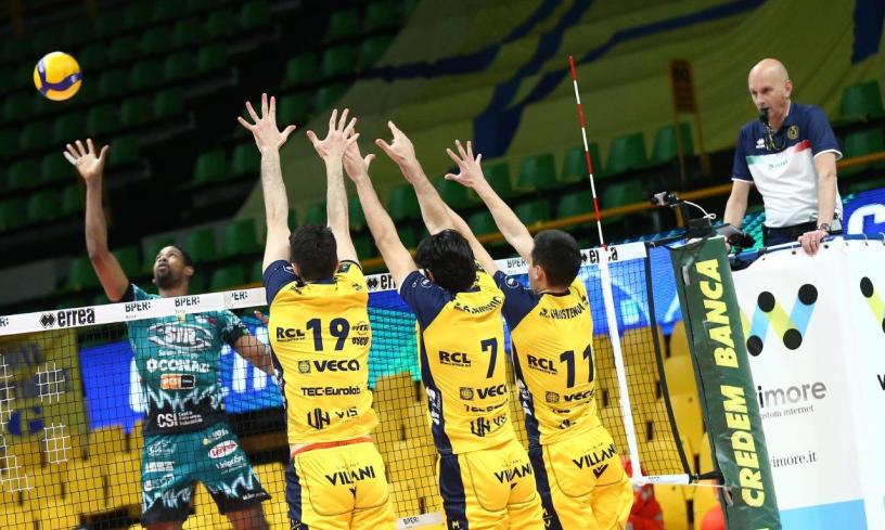 Coach Andrea Giani ha messo in campo la solita formazione con Christenson in regia supportato da Petric. Nel ruolo di centrali Stankovic-Mazzone. Completano il reparto offensivo Lavia-Vettori, libero Grebennikov. Subentrano Karlitzek, Porro, Rinaldi, e novità del giorno, anche se per un solo servizio tra l’altro sbagliato, lo schiacciatore austriaco Buchegger, inserito in rosa nel novembre scorso.