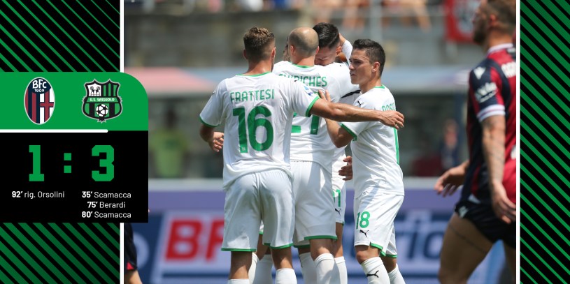 Il Bologna nel frattempo esaurisce i cambi, mentre Mr. Dionisi ne utilizza altri due, Ruan, e Ceide entrano al posto di Raspadori, e Muldur. Un minuto più tardi un’implacabile Frattesi pesca un solissimo Scamacca che sigla la doppietta personale valevole per lo 0-3 in favore dei neroverdi, e derby in pugno. Sul finale c’è spazio per Defrel, e Magnanelli al posto di Frattesi, e di Berardi. Non solo, in pieno recupero Orsolini dal dischetto segna il goal della bandiera, e il direttore di gara Davide Ghersini fischia la fine delle ostilità 1-3 Sassuolo, e tre punti d’oro in vista dell’ultima gara di campionato.