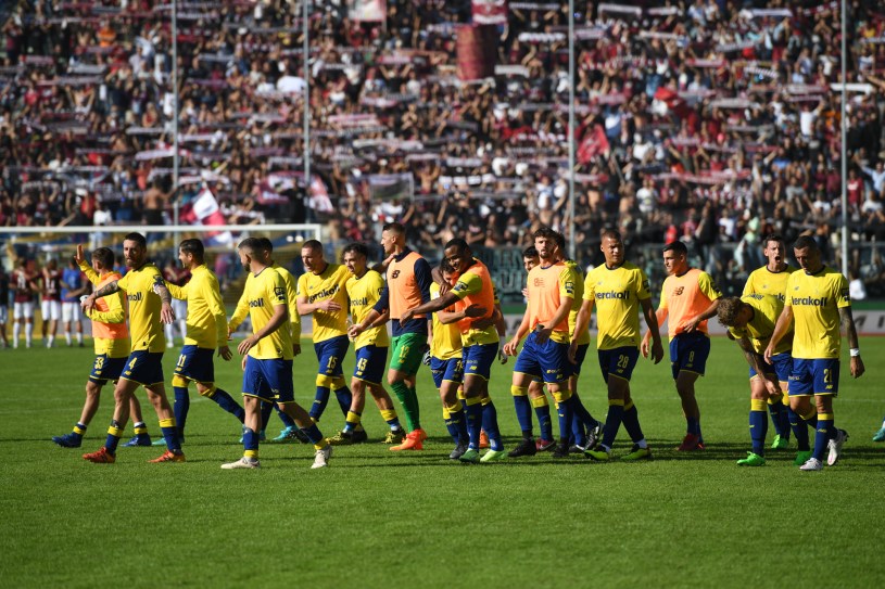 L’ex giocatore gialloblu Cristian Bucchi, ora tecnico dei marchigiani ha schierato in campo un massiccio 3-5-2, partendo dall’estremo difensore Guarna, protetto a tratti in maniera positiva, e non, da una snella e imprecisa difesa a tre composta da Bellusci-Botteghin-Quaranta. A seguire un corposo centrocampo a cinque con protagonisti nel bene e nel male Falzerano-Collocolo-Buchel-Caligara-Falasca. Chiude l’attacco a due Dionisi-Gondo.