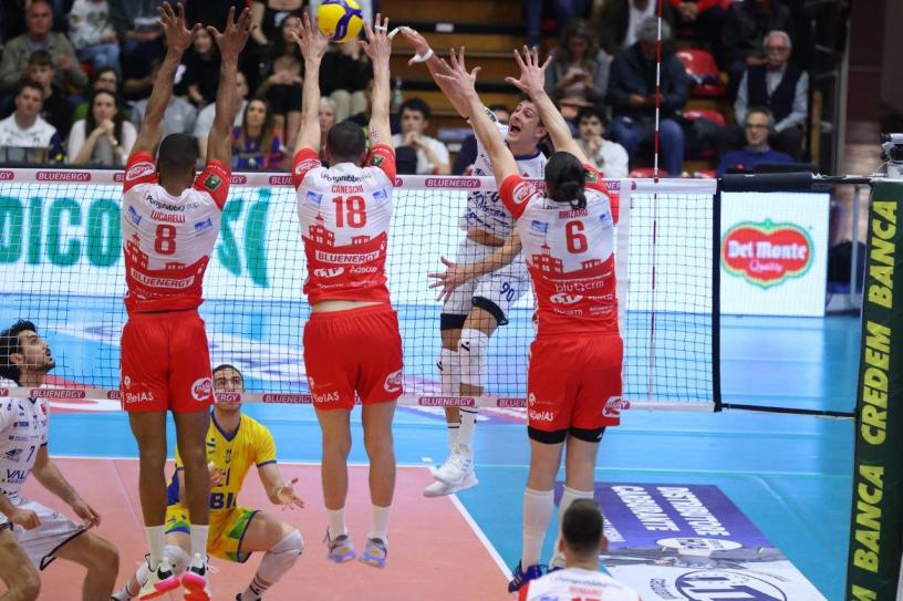 Eccoci alla partita con il primo set che parte malissimo per Modena con Piacenza avanti 9-1 per merito di Simon-Leal, e di un’imperioso Antoine Brizard autore di un partitone. Passano i punti, e Modena prova a risalire la china con Tommaso Rinaldi che subisce un muro, e trova un ace 11-6 Piacenza. Tra i biancorossi mattatore Leal, autore dell’ace del 19-12. Lo stesso Leal chiude il set sul 25-20 Piacenza tra l’entusiasmo del “Pala Banca”.