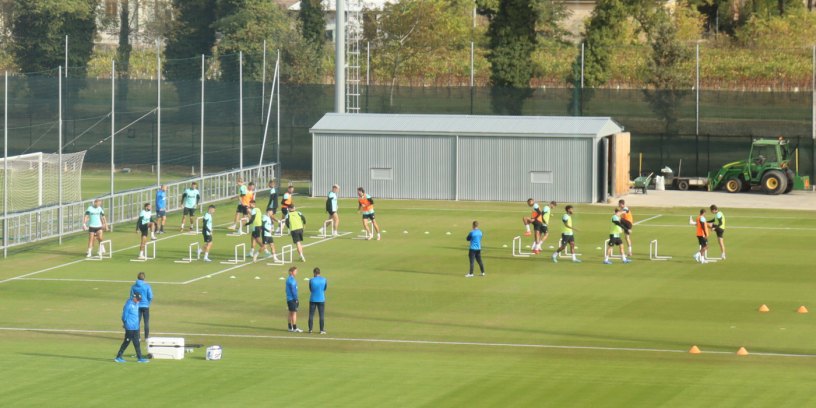 Passiamo al campo: in allenamento oggi pomeriggio Berardi e compagni agli ordini di Mr. Alessio Dionisi hanno cominciato la seduta con il più classico dei riscaldamenti, passando poi al torello, ai giochi di posizione, chiudendo il pomeriggio di lavoro con le partitelle a campo ridotto.