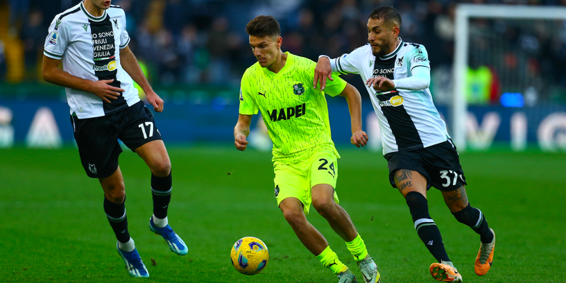 Le emozioni sono tutt’altro che finite: al minuto settantacinque Ebosele frana su Andrea Pinamonti e Gianluca Manganiello concede il rigore ai neroverdi, rigore siglato da Domenico Berardi 2-1 e partita riaperta a Udine.