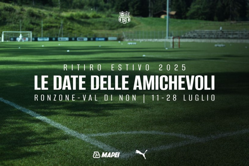 Domenico Berardi e compagni cominceranno ad allenarsi martedì 8 luglio al “Mapei Center” prima di partire per Ronzone, dove vi staranno da venerdì 11 luglio a lunedì 28 luglio.