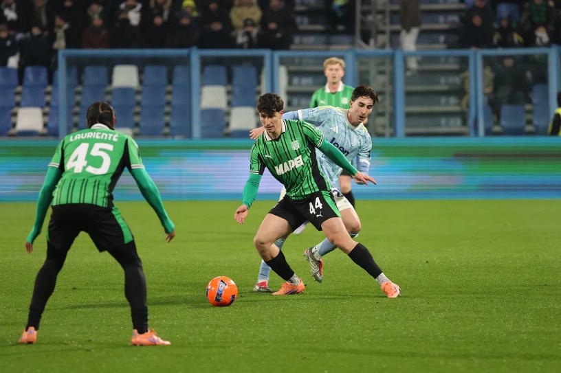 Siamo al dodicesimo e la lanciatissima Juventus di Mr. Luciano Spalletti si fa pericolosa in più occasioni, con Thuram prima e Yildiz poi, ma il gol è nell’aria: infatti al sedicesimo i bianconeri si portano in vantaggio per mezzo di un cross di Kalulu, che “beffa” Muharemovic autore di un “goffo” autogol, complice anche l’errata posizione del portierone del Sassuolo, 0-1 per la Juventus al “Mapei”.